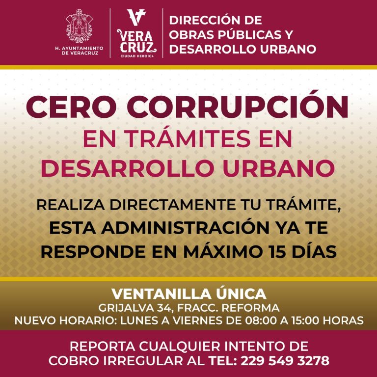 13 de abril de 2026 ***Ahora los trámites son directos y con respuesta en máximo 15 días, en horarios de 08:00 a 15:00 horas, de lunes a viernes El Ayuntamiento de Veracruz reafirma su compromiso con una política de Cero…