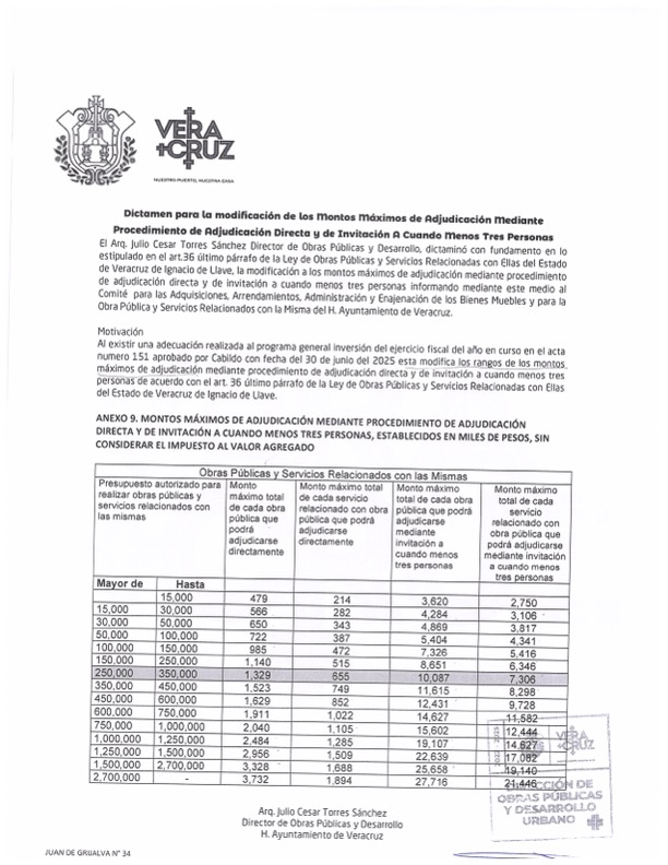 Dictamen para la modificación de los montos máximos de adjudicación mediante procedimiento de adjudicación directa y de invitación a cuando menos tres personas (Segunda publicación)