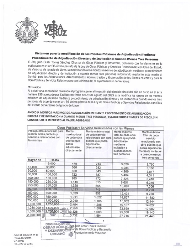 • Dictamen para la modificación de los montos máximos de adjudicación mediante procedimiento de adjudicación directa y de invitación a cuando menos tres personas (Tercera publicación)