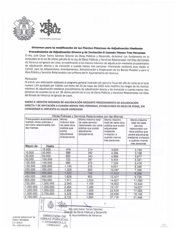 Dictamen para la modificación de los montos máximos de adjudicación mediante procedimiento de adjudicación directa y de invitación a cuando menos tres personas (Segunda publicación)